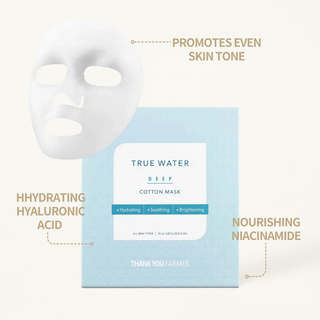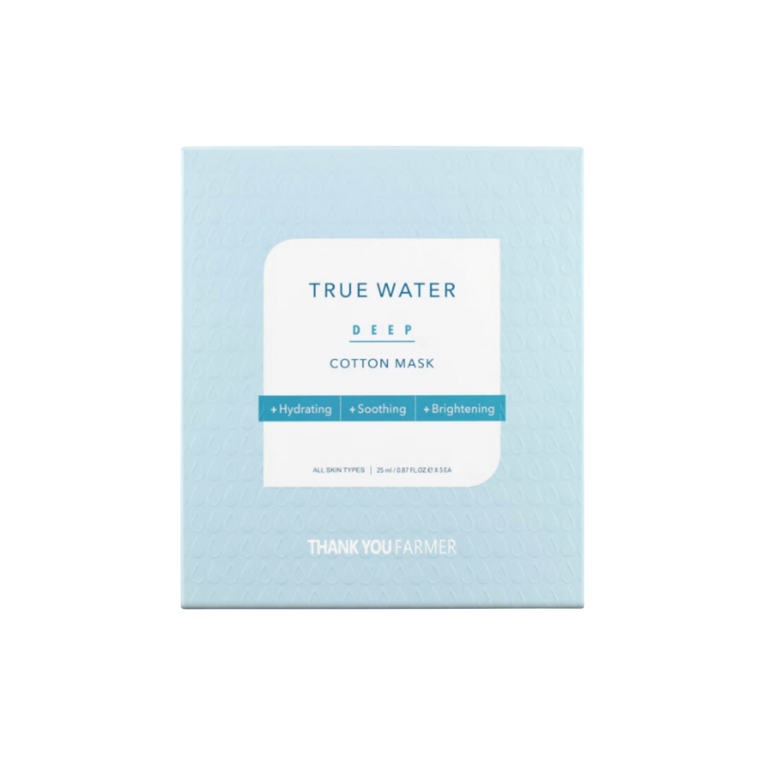 Experience the hydrating power of hyaluronic acid with the Thank You Farmer True Water Deep Cotton Mask, designed to deeply nourish the skin.