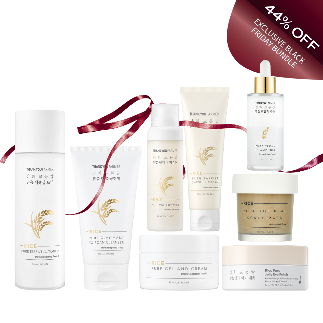Uncover your most radiant skin yet with this limited-edition Black Friday exclusive: the full Thank You Farmer Rice Pure collection in one complete ritual. Powered by brightening, soothing rice extract, this curated routine transforms dullness into clarity and comfort from the very first step.